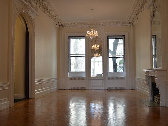 This outstanding three bedroom apartment (main building), located in the renowned Belmont Mansion in the heart of beautiful Brooklyn Heights, is like no other. This expansive full floor apartment with soaring high 19 foot ceilings, all new front windows, beautiful crystal chandeliers and pristine architectural detail will transport you to another time, new AC/heat split system. The main bedroom is likewise expansive with very high ceilings and a private bathroom, and the two ancillary bedrooms are a perfect size with a bathroom of their own. Walk out onto the private gangway and descend into a private garden for a relaxing time. Too cold or too hot to be outdoors? Well then go up and in to your very spacious bonus room-cottage house equipped with its own bath and wet bar / kitchenette. Both/sum is
