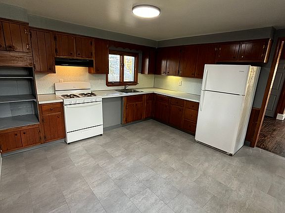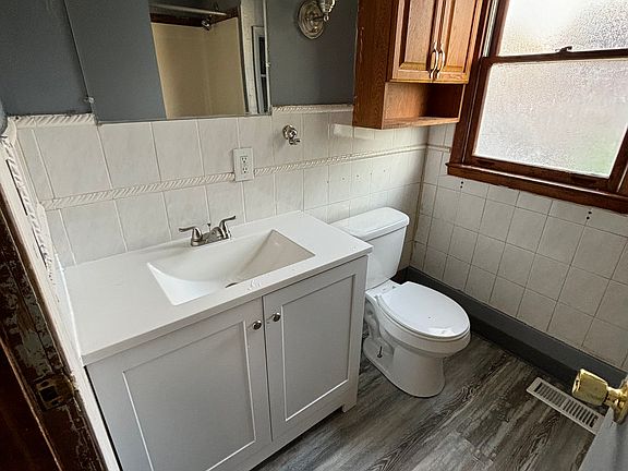 Freshly painted, some new carpet, new flooring in kitchen & bathroom, and hardwood floors, 4 bedroom, 1 bathroom house, EIK kitchen, living room, full basement w/ WD hookups, partial attic, partially fenced yard. Driveway.