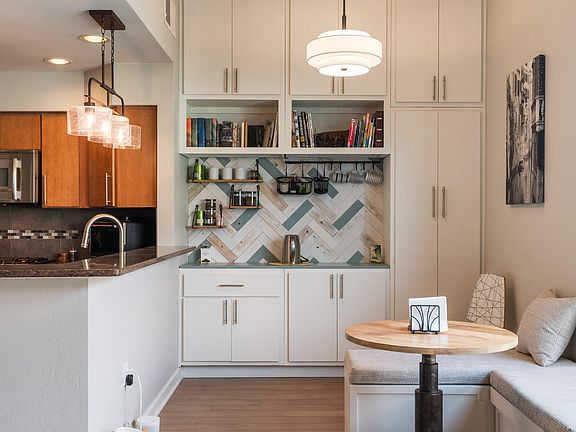 Sandia mountain viewsShared courtyardMotorized hunter douglas shadesBamboo flooringUpgraded lightingCustom dining cabinetryHurd windows