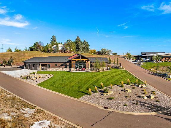 Custom-built in 2023, this stunning one-level home offers high-end finishes and breathtaking Missouri River views. Located in a gated community, this home features 3 bedrooms, including a luxurious primary with patio access, spa-like bath with heated tile floors, 4-way shower, dual vanity, and custom walk-in closet. One-bedroom doubles as an office/hobby room with a custom Murphy bed. The open floor plan boasts soaring wood tongue-and-groove ceilings, built-in TV frame, surround sound, and a dining room with fireplace & sliders to the backyard. The chef’s kitchen impresses with matte black appliances, gas stove with pot filler, leathered granite, tile backsplash, custom cabinetry, large island, pantry with rolling shelves. Enjoy a spacious laundry room, finished 3-car heated garage with EV wiring, utility sink, and storage room. Entertain outdoors with a covered kitchen, built-in BBQ, TV mount, heaters, and fenced yard with quarried rock wall. Luxury living with stunning views!