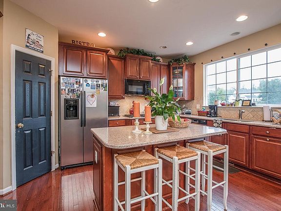 Brick Front Colonial in Stafford. Situated right across from Clubhouse & Pool. Spacious rooms, wood floors throughout main level & other room for Office/Library. Granite counter tops & beautiful cherry wood cabinets in kitchen. 2 Tier Deck out back w/huge, flat backyard that is completely fenced. Full finished basement w/wet bar great for entertaining! Just mins to the VRE and I-95.