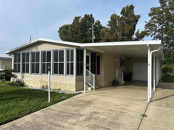 Park East is an age 55+ Resident Owned Cooperative (Co-op) Community. The price of the home includes 1 share of the community ownership valued at $58,200). When you are a shareholder there is no lot rent to pay. The HOA fee for this property is $211.00 monthly which includes Lawn Cutting and Edging, DIRECTV STREAM Cable and Frontier Fiber Optic High Speed WIFI. The clubhouse features an exercise room, library, billiard room and large hall with full kitchen (available to rent for private parties) where loads of community activities take place including Bingo half the year on Thursday nights and community holiday parties. Golf carts ok in community to drive on roads. Come live in this well sought after community and also enjoy the beautiful picturesque lakefront with 2 boat docks and picnic area. Executive public 9 hole golf course surrounds this beautiful community. Incredible picturesque lakefront with picnic area ,bbq's and firepit private boat ramp docks and fishing pier. Pool area with lounges, heated pool with relaxing spa. 15 minutes to Disney property. Taxes are paid to Polk County. WELL MAINTAINED 1040 SQ FT 2 BEDROOM 2 BATH PROPERTY FEATURING UPDATED WINDOWS, CERAMIC TILE FLOORS. HUGE LANAI WITH THERMAL WINDOWS AND UPDATED WINDOWS THROUGHOUT HOME. SIZEABLE GOLF CART GARAGE / SHED. ROOF APPROX 6 YEARS OLD. AIR CONDITION SERVICED YEARLY INCLUDES BLUE LIGHT TECHNOLOGY FOR MOLD, THE UNIT IS 15 YEARS OLD BUT LIGHTLY USED THROUGH THE YEARS BY A HOMEOWNER WHO LIVED IN IT LESS THAN 6 MONTHS A YEAR. WHOLE HOUSE WATER SOFTNER SYSTEM.