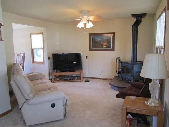 Must see inside to appreciate this completely updated and move in ready home. Newer windows, flooring, and vinyl sided exterior. Comfortable sized living room with wood burning stove. Formal dining room adorned with laminate flooring, kitchen is complete with granite countertops, oak cabinetry and tile flooring. Two generous sized bedrooms, and an oversized bathroom with jetted tub and separate glass block shower. Two garages! One for all your toys!Oversized yard backs to Beaver Dam River.