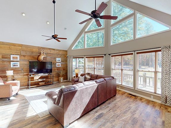 Must See! Wonderful 3-bedroom, 2.5 bath home at beautiful Pickwick Lake! Home had many updates around 2021 which included: new paint in/out, new flooring, remodeled kitchen, stainless appliances, new A/C unit 9/2020. Substantial vaulted great room with natural light. Open concept kitchen with large pantry. Enjoy spacious screened porch & expansive deck, plus firepit, perfect for entertaining. Primary bedroom suite on main level. Covered parking space for fishing boat, golfcart, etc. Community pool. Fully furnished, & move in ready! Hills of Pickwick gated neighborhood.