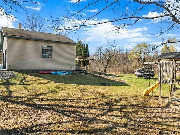 Come see this customized designed colonial home of your dreams set upon 2 beautiful acres, 1 mile from Hudson River & Village of Germantown, and only 2 hrs from NYC. This 3 bedroom, 1.5 bathroom home has two separate massive garages and gives generous space to move about without losing that quaint, cozy atmosphere when it's time to cuddle up by the wood stove. Garage Specs: 1826 total sq ft to convert or create additional living space, workshop, or studio space of your dreams (garage #1 24ft x 24ft) (garage #2 25ft X 50ft). Features: Radiant heated floors, remodeled family room and kitchen with butcher block island, outdoor dining room and pergola, hand crafted wood ceilings, outdoor deck, wood stove, laundry room, outdoor fire pit, and two separate wells. Recently Updated: Windows 21, cedar shake siding 20, kitchen 18, radiant heat 18, water heater 18, water softener 16, and slate roof 13. (All real estate professionals and members of the public are required to wear a mask when visiting this property.)