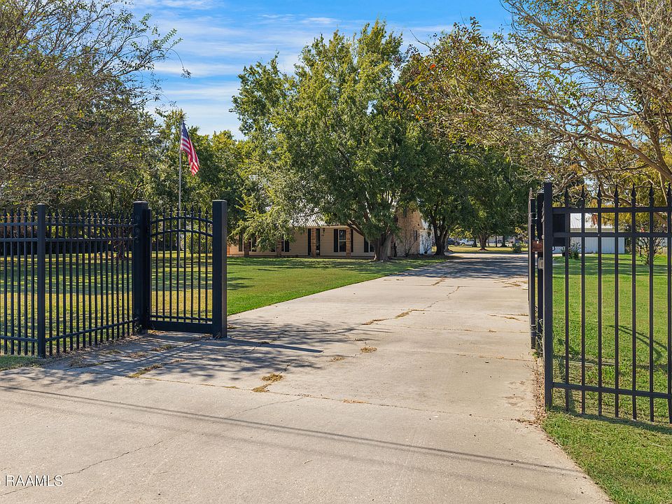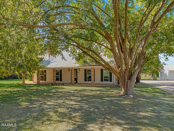 Private Retreat on 1.8 acres in Carencro. Drive through the electric gate into this secluded homesite, framed by two Drake Elms. Enjoy the privacy of acreage surrounded by either fencing or bamboo for an atmosphere of serenity. The Acadian-style house features a front porch designed with the 'Cajun Look,' with brick flooring and brick columns. The house features an open floor plan in the living area with easy flow from the large kitchen with an island into the dining room and living room with a double tray ceiling. Each bedroom has a private full bath, plus a half bath for guest use. Included is a 16 X 20 outbuilding, divided into a storage side and a workshop side. The workshop has electricity, water, a half bath, air conditioning and a separate electric meter. This space could be converted into a guest apartment/ mother-in-law space. Hook-ups are present for an RV or mobile home. Additional features include a whole house generator. Flood Zone X and no flood history.