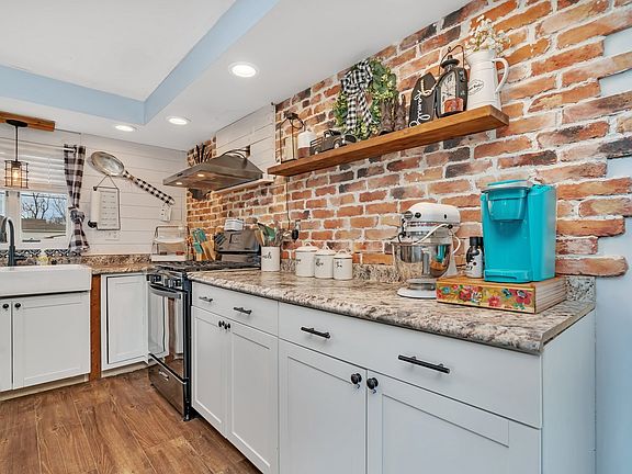 What a great opportunity to begin your home ownership journey. This home was built in 1880 and has stood the test of time. New construction would have a hard time standing against this solid and sturdy home. Newer furnace and siding approx. 4-5 years ago. The kitchen has already been updated with newer cabinetry, counters, appliances and open shelving. Spacious living room and Master bedroom on the main floor. Bathroom upgraded in 2021.Second and third bedrooms are on 2nd level with a large walk closet in between them. (this was once used as a small 4th bedroom when home was purchased) Full unfinished basement has the laundry area and tons of storage. A wraparound deck to sit, relax and enjoy sunsets, lemonade and peace of mind. The one car garage with concrete flooring is detached. Plenty of room to run on your corner lot.