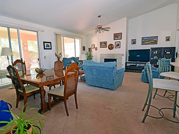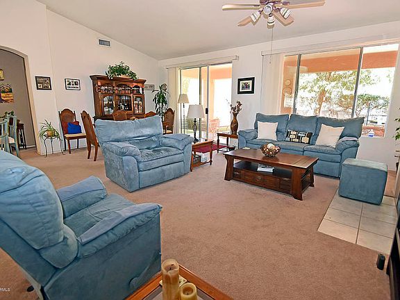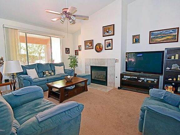 Looking for a very peaceful setting with views?? Come see this Ironwood Model 1984 sq ft. Mountain & Red Rock views, backs to the open land. Covered patio , open patio & extended patio. Water feature, grass & big trees. Open split floor plan, big master, bath has step in shower & garden tub, huge closet. Kitchen has elec. cooktop, pull out drawers, eat in kitchen & formal dining rm or use for all living rm space.Gas fireplace. All appliances stay, water softener. Come enjoy resort living all year round with all the activities of the clubhouse, salt water heated pool, spa, bbq grills, bocce ball, hiking & walking trails, a nice park. Put this on your list to see!!