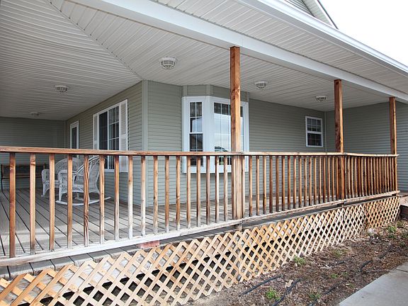 Charming 3 bedroom Ranch with wonderful wrap around porch! Bright open concept with vaulted ceilings and large windows allowing natural light to flood the home! Open eat-in kitchen with counter seating. Master bedroom has walk in closet and private 3/4 master bath, and access to back deck Full, unfinished basement provides storage and could be finished to add even more value to this amazing home! Large yard features a beautiful deck allowing for entertaining and outdoor living overlooking undeveloped farmland, wheat, and corn fields-very pretty country scene! Original owner and very well maintained!