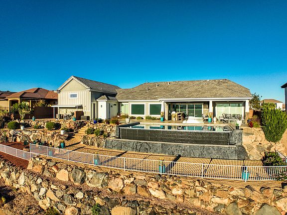 Infinity poolFire pitsPrivate backyard oasisExpansive covered patioBunk roomRim-view estateLow-maintenance landscaping