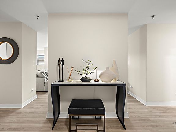 Welcome to our one-of-a-kind home at 110 S. Evergreen! A contemporary, light-filled condominium in the heart of Downtown Arlington Heights, IL - the perfect place to experience suburban convenience with urban flair. This condominium has been remodeled from top to bottom! We cannot wait for you to experience to Luxury you have been looking for! This spacious unit offers a Gorgeous open floor plan with large windows that flood the space with natural light, and 2 balconies to enjoy outdoor living! The wonderfully updated Kitchen features Beautiful modern finishes, sleek cabinetry, and quality appliances make it a delight for cooking and entertaining with its separate dining area with walk out alfresco dining too! The inviting living/dining space provides warmth and comfort for relaxing or hosting guests on the balcony or by the modern glass lit fireplace. The master bath and guest bath are spa like and rival any end high end hotel. The bedroom is a peaceful retreat tucked in the back corner, away from any street noise. The storage for a condominium 2nd to none! Not only does it have 2 coat closets, but a 3rd storage closet, a huge walk-in pantry, large California closets in both bedrooms, as well as 2 well-appointed linen closets too! Plenty of storage to keep your home organized and clutter-free. the unit has 1 great parking space right by the entrance to the building and the exit. Additional spots can be found in visitor parking. Enjoy the ease of building access, well-maintained common areas, and the sense of community that comes with downtown living. Nestled in Downtown Arlington Heights, this condo places you steps from an energetic and walkable neighborhood full of boutique shops, local restaurants, and cafes. Downtown is served by the Metra, giving you convenient, car-free access into Chicago. Arlington Heights is well-known for its strong community vibe, pedestrian-friendly streets, and award-winning schools. Don't miss this rare opportunity to own in one of Arlington Heights' most desirable downtown addresses at 110 S. Evergreen. Love where you live!