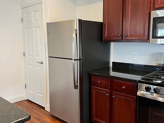 -Stainless steel appliances, mahogany-stained cabinets & granite counters = chef's kiss