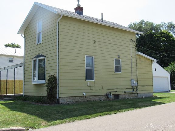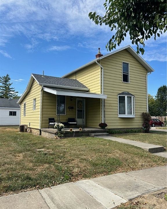 Welcoming covered front porch invites you to this 3 bedroom, 2 full bath home, living room featuring large bay window, kitchen with updated cabinets, large laundry/mud room, clean cellar/basement great for storage and safety from possible storms. House is much bigger than it looks from the road. Corner lot enhanced with great curb appeal, new privacy fence, large rear lot, and detached 2 1/2 garage with cabinets, storage shelving, and area workshop. Maintenance free aluminum siding and newer roof. Move-in condition! Seller just had the cellar water proofed!
