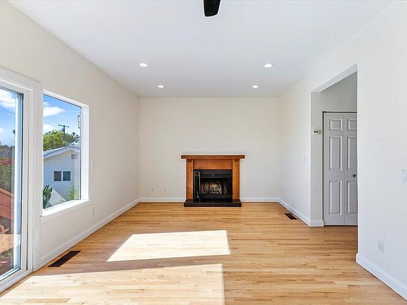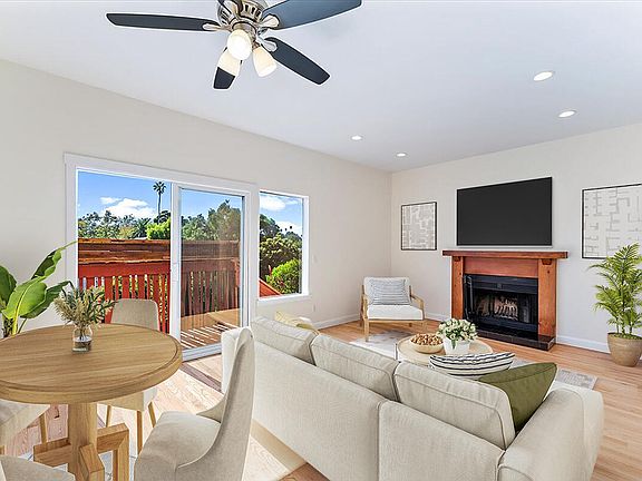 Step inside to discover light-filled rooms throughout and beautiful hardwood floors on the main level. The spacious living room features a large fireplace and sliding glass doors that open to a charming balcony, creating a seamless indoor-outdoor flow.