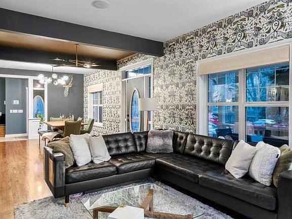 Welcome to the premier residence on iconic Somme Boulevard—an executive, five-bedroom end-unit townhome offering 3,321 sq. ft. of refined living in the heart of prestigious Garrison Woods. This exceptional property enjoys rare south, west, and east exposures, immersing the home in beautiful natural light and elevating its European-inspired ambiance. Blending privacy, scale, and sophistication, it offers the presence and grandeur of a detached luxury home in one of Calgary’s most coveted inner-city enclaves. The main floor sets an elevated tone with nine-foot ceilings, open-riser staircases, rich hardwood, designer German imported wallpaper, curated Carrington lighting, black architectural hardware, and Farrow & Ball “Off-Black No. 57” paint for a moody, refined aesthetic. The sunlit living room with a sculptural gas fireplace flows effortlessly into a sophisticated dining area and a chef’s kitchen appointed with custom solid wood cabinetry, stone counters, a new matte-black faucet, stainless steel appliances, a corner pantry, and a picturesque built-in window bench. The second floor offers a chic bonus lounge, three beautifully appointed bedrooms, and a stunning turret office wrapped in windows—enhanced with Transylvanian designer wallpaper, new thermal blinds, and upgraded hardware. Every storage space across the home has been masterfully crafted by California Closets, including closets, pantry, and third-floor built-ins. The top level becomes a private, boutique-hotel-inspired retreat with vaulted ceilings, peekaboo mountain views, a stately library with fireplace, an elegant walk-in wardrobe, and a spa-calibre ensuite with steam shower and soaker tub. The fully developed lower level extends the living experience with a generous recreation area, a fifth bedroom, and an upscale laundry room featuring a nearly new oversized washer/dryer. Outdoor living is exceptional: a grand south-facing veranda, a sunlit patio with BBQ line, a private backyard, and a covered vehicle refuge with a detached double garage. Additional luxuries include air conditioning, concealed TV wiring systems, new exterior sconces, in-ceiling speakers, and a Vacuflo system. Just steps from Marda Loop’s boutiques, cafés, restaurants, and fitness studios, this residence embodies upscale inner-city living at its finest.