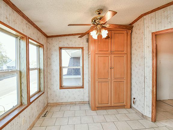 Small town living and garage lovers dream! This manufactured home has 4 beds and 3 baths including a primary suite. With a little sweat equity this house could be a lovely place to call home. The garage is massive with 5 stalls and would be perfect for a car enthusiast.
