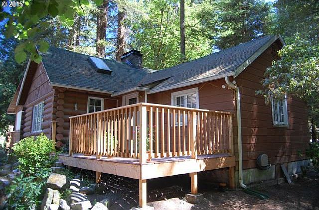 Your chance to own a charming log cabin with the Sandy River in your backyard! 2 bedrooms, dining rm and a large open living room with vaulted ceilings and extra space above for storage or bedroom. In past three years: new well & pump house, New Wisbro no freeze plumbing, water heater, wood stove, new front and back decks, Electrical and kitchen updated too! Not in flood plain so no flood insurance needed! Amazing riverfront access