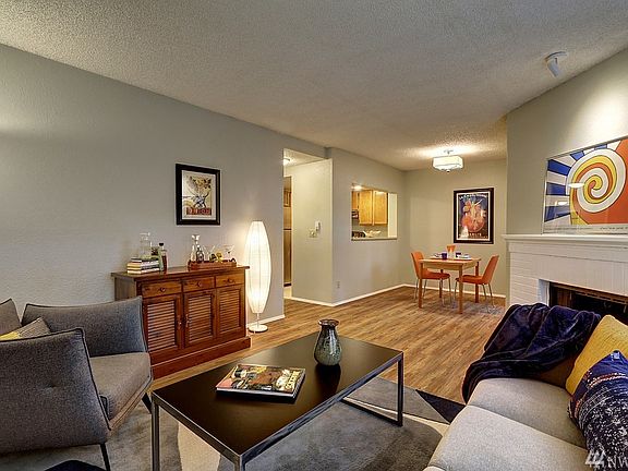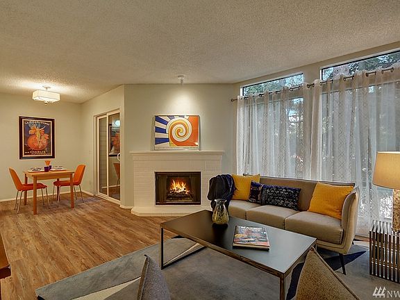 Here's your chance to own a beautifully maintained, move-in ready 1-bdrm, 1-bath condo in a scenic, well-designed & professionally run complex surrounded by magnificent trees. Featuring new luxury vinyl floors & fresh paint, this affordable unit has its own laundry, a priv. entr, storage, a deck, & a handy near-by carport. The kitchen has quality cabinets, counters & appliances. Enjoy the warmth of the cozy wood fireplace! Immac & situated near shopping, transit, restaurants & commuting routes!