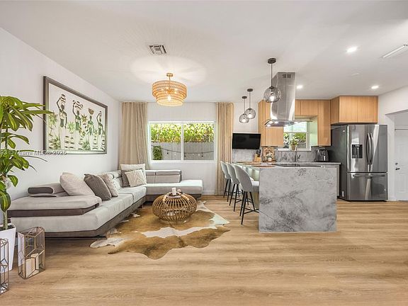 Fully renovated 3-bedroom + den, 2-bath house available for annual lease in The Roads. This residence offers over 2,000 SF of living space with an open layout, custom cabinetry and closets, and light oak luxury vinyl flooring throughout. Enjoy a seamless indoor-outdoor lifestyle with compete impact windows, a spacious family room, and French doors opening to a private backyard oasis. The exterior features a resort-style pool, full outdoor kitchen with built-in grill, and low-maintenance landscaping. 2-car garage, 2-car carport, plus space for 4 additional vehicles. Its 6,750 FT lot is just minutes from Brickell, Coconut Grove, and Key Biscayne, offering quick access to dining, shopping, and entertainment while maintaining a quiet residential feel in one of Miami's most desirable areas.