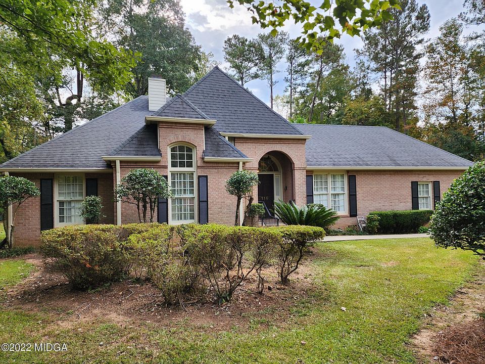 One owner home with one level, brick, and in North Macon, so hard to find. Updated kitchen includes stainless steel appliances with built-in microwave, Kitchen aide stove and Bosch dishwasher. White countertops, slide out shelves in the island and an office area add extra to the kitchen. Kitchen is open to the family room with fireplace, wet bar and hardwood floors. Separate dining room adjacent to the kitchen. Rear porch closed in to make a separate TV room/Sunroom. Double garage. Master bedroom with vaulted ceiling and large master bathroom with dual closets. Great .69-acre lot. Great curb appeal. As Is Sale.