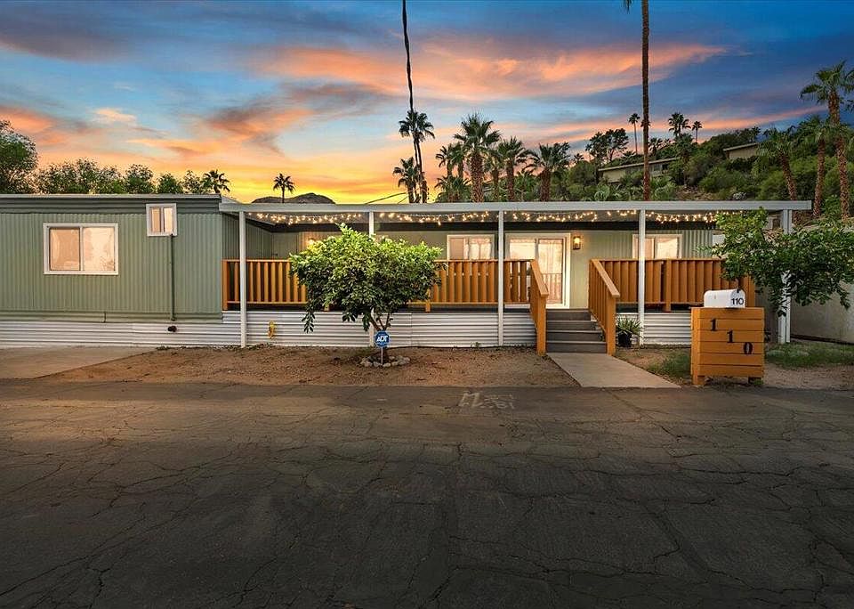 LOCATION, LOCATION, LOCATION! This mobile home is nestled under the Santa rosa Mountains in South Palm Springs; Horizon MH Village is an eclectic all-age community situatedbelow the iconic Bob Hope Estate and Araby Hiking Trail. Enjoy the well-maintained community with great neighbors in a quite affordable and secure location. Pet friendly enclosed dog park and virtually wind free. Palm Springs International Airport is a 5-minute drive. The community has a swimming pool, spa, community room, shuffleboard, and a fitness room. This 2-bedroom, 2 bath mobile home has been completely updated with laminate wood floors throughout, newer roof, sheet rock, double pane windows, newer appliances, updated electrical, three mini-split air conditioning/heat units. and three ceiling fans. and a stackable washer-dryer. This mobile is ready for a new owner that wants to enjoy the relaxed lifestyle of Palm Springs. It has been well maintained and would make a great vacation or permanent home. It must be owner occupied, all potential buyers must be approved by the park management to purchase, the monthly land rent is $925 per month, buyer is responsible for electricity, gas, sewer and water. Buyers must have verifiable income of two times the monthly land rent. Enjoy your morning coffee or evening cocktails on the front covered porch. There is a covered Parking area with a storage shed and two orange trees. Call for an appointment to see this move-in ready mobile home. All information deemed reliable.