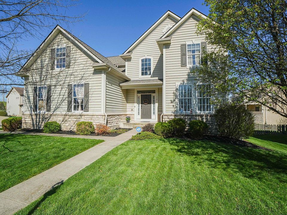 On a mature tree-lined street in the well-established Shawnee Crossing neighborhood in Pickerington, you will find this beautifully maintained 5 (or 6) bedroom home. This home is situated on a beautifully landscaped and fenced corner lot within walking distance to downtown and across the street from a disc golf course and park. Boasting almost 3600 square feet, a first-floor owner's suite with a stunning newly renovated bathroom with marble shower and floors, FOUR bedrooms upstairs, and a walkout basement with three full-sized windows, this home has room for your family to grow! The first floor also has an office with a walk-in closet, a half bath, and laundry room. The kitchen has recently been renovated with marble backsplash and quartz countertops This home is a must-see!