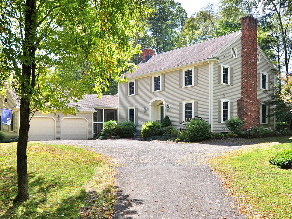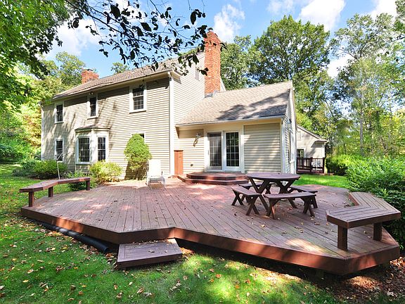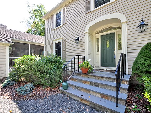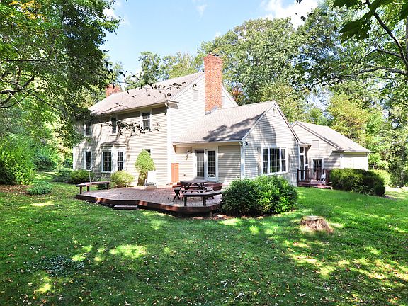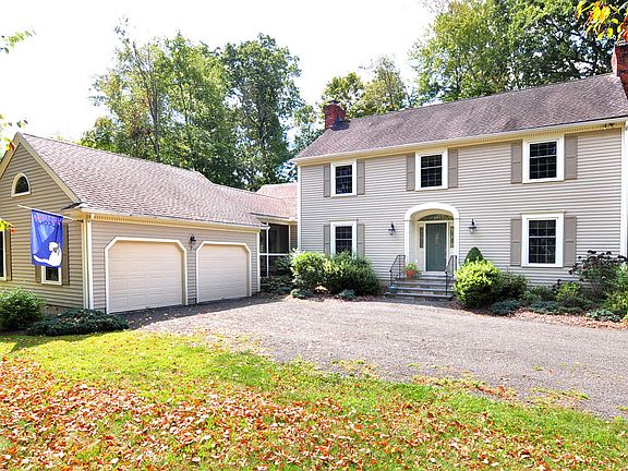 LOCATION, LOCATION, LOCATION! Nestled on a spacious 1.39-acre lot in a quiet cul-de-sac, this lovingly maintained home is just minutes from local and state parks, scenic trails, and outdoor recreation. Owned by the same family for 35 years-only the second owners-this property exudes pride of ownership throughout. The first floor features a bright, spacious living room with fireplace, a formal dining room, and an eat-in kitchen with granite countertops and stainless steel appliances that opens into a cozy family room with a second fireplace. Step out to the ground-level deck and level backyard-perfect for entertaining or relaxing. A large breezeway connects to the attached garage for added convenience. Need space for guests or multi-generational living? A private office next to a full bath offers flexible options for an in-law setup or home workspace. Upstairs, you'll find a huge primary bedroom with full bath, along with three generously sized bedrooms and ample storage throughout. Recent updates include: Newer windows (2010), New boiler (2015), Professionally painted exterior (2019) New gutters (2014), Newer roof and front steps. This home combines timeless charm with thoughtful updates, all in an unbeatable location. Don't miss this rare opportunity!