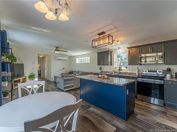 Welcome to a bright and modern home in the heart of St George, offering clean design, quality finishes, and comfortable one level living. The main living space features a vaulted ceiling and an open concept layout that blends the kitchen, dining, and living areas into an inviting and functional setting. The kitchen is a standout with soft close drawers and cupboards, an oversized island, laminate countertops, stainless steel appliances, a walk in pantry, and a hidden garbage system that keeps everything tidy and efficient. Wide six inch plank laminate flooring adds warmth throughout the home. Comfort is provided by a heat pump along with electric baseboard heating, while the HRV system supports excellent air quality year round. The bedrooms offer peaceful spaces and the full bath is designed for everyday convenience. Outside, the yard provides manageable green space for gardening, relaxing, or play. Located close to town services, Lake Utopia, and all the amenities of Charlotte County, this property is ideal for buyers seeking a modern and affordable home in a friendly neighbourhood. Better call to book your private viewing today!