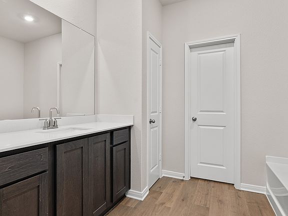 Large windowsSpacious walk-in closetMultiple linen closetsDeep soaker tubLuxurious downstairs master suiteAbundant cabinetrySpa-like bathroom