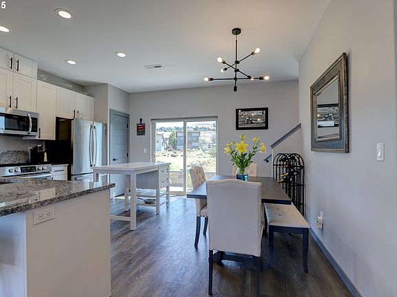 This lovely contemporary home is better than new with updates including landscape enhancements, window coverings and finishing touches throughout. The open concept of the main level is a great space with access to the backyard patio off the kitchen and a hall half bath makes it great for entertaining. The kitchen has a well planned layout with a pantry, dining area and floating island. The stainless steel appliance and solid surface counters add to the beauty of this home. From the kitchen the sliding door takes you to a backyard patio oasis with beautiful patio overlooking the cove filled with water fowl and wildlife. This patio has room for a bar-be-que and comfy furniture for outdoor entertaining as well as access to the fenced side yard.The primary bedroom suite is on the main level, the ensuite includes a lovely tile shower, double sink vanity and walk in closet.Upstairs is another living space with access to the 22 x 24 roof top deck that offers some great views above the neighborhood overlooking the cove. Also find a full guest bathroom, the laundry closet and two more bedrooms on this upper level. Lone Pine Village is a planned community with modest HOA fees (quarterly $245) and a nice community park with a fantastic water feature.