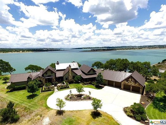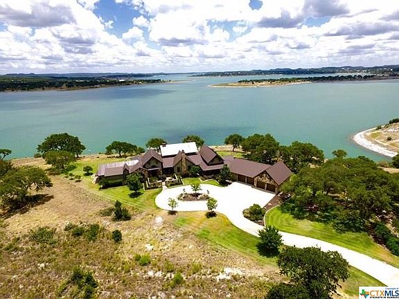 Secluded one story home located on a peninsula in Casa de Canyon with 540 ft. of unobstructed lake front on 2.42 acres on the North end of Canyon Lake with a view of the lake all the way to the Dam in the exclusive gated community of The Peninsula at Mystic Shores. This home is built for entertaining with 30 foot NanaWalls with ten 8' tall collapsible panels which open up entirely to outdoor living , pool, and outdoor kitchen all with panoramic view of lake. Flagstone surrounds all covered porches, walkways, patio decks, fireplaces and accent walls throughout the home. Has a 4 car garage with 5 garage doors (one to rear). This home is for the discriminate buyer who appreciates beauty and peace.