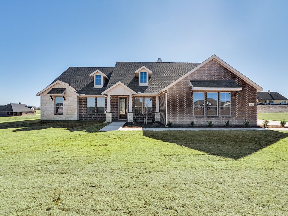 We are excited to introduce a brand new floor plan called the Salado! The entry is open to a bright flex Room on the right. The private owner's suite is separate from bedrooms 2 through 4. The owner's suite is complete by including a garden tub, separate shower, private commode, walk in closet, and dual, separate vanities. Adjacent to the owner's suite is the large living room with a fireplace option and open to the spacious island kitchen.