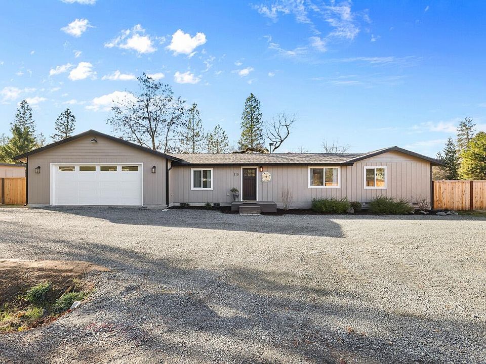 Welcome to 110 Stonebrook Way! A light-filled, newly remodeled home with warm farmhouse charm on a flat 0.51- acre lot in Merlin. This 3-bed, 2-bath home blends comfort, style and outdoor living. Fresh updates and abundant natural light create an inviting interior. A NEW well was just installed that produces 20 GPM! The spacious primary suite features a walk-in shower and soaking tub. The farmhouse- style kitchen offers a double oven and has tons of storage, plus the convenience of a separate laundry room with a sink. Outside, enjoy a 540 Sq Ft covered deck ideal for relaxing or entertaining. The fully fenced yard provides space for gardens or play, with a side gate for RV parking with a 50-amp hookup. A newly built two car garage with 10-ft ceilings and tons of light, offers excellent space for storage or projects. Minutes from the river, trails and outdoor recreation with easy access to Grants Pass and I-5. Please request to view improvements list.