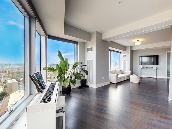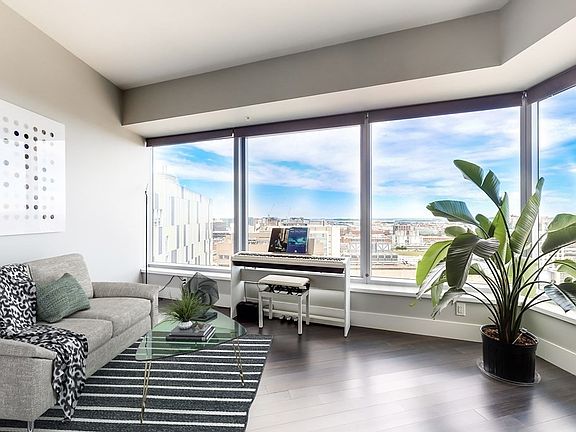 W Boston - Rarely available 1 plus residence home that features an open layout that offers 2 separate seating areas with a divider system that can convert one living space into a guest bedroom or a spacious office space. Dramatic corner unit with floor to ceiling windows that offers panoramic views of Boston Harbor, Financial District, South Shore and the Blue Hills. Custom built dining island with granite counter tops, a dedicated office space off of the master bedroom. The kitchen features Rosario cabinets, Wolfe appliances and a Sub Zero refrigerator. The master bathroom has a double sink and an over sized shower. There is a half bath which is ideal for guests plus an in unit washer and dryer. The building has 24/7 concierge services, all hotel amenities, discounted maid service, Bliss Spa and the W Lounge along with the residence fitness gym. Virtual Tour is available.