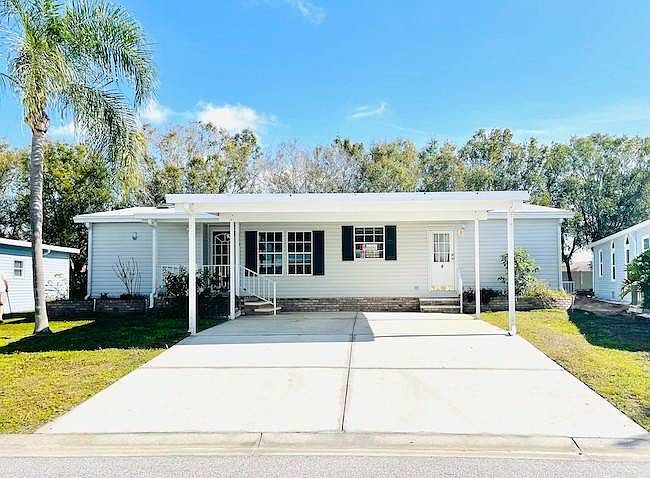 Looking for an age-qualified community that is clean, quiet, and has a lower lot fees than others in the area? then The Gardens is what you're looking for. We are just minutes from shopping, banking, restaurants, and medical care. Easy access to I-75 which can bring you north to Clearwater/Tampa or south to Bradenton/Sarasota. This 2/2 house starts with an extra-wide double carport with two front entryways to this very bright open floor plan. You can enter the laundry room with a newer washer and dryer, leading you into the kitchen with ample cabinet space and pantry. From there you are in the dining area /main entryway which opens to the oversized living area with cathedral ceilings and natural sunlight. The bonus room has French doors and can be used as an office, den, or craft room. The guest bedroom/bath are separate from the master by the spacious living room. The master bedroom has a walk-in closet, the bath offers a double vanity, shower, and has a built-in linen closet. Off the living room through the sliding doors is the ex-large screened in lanai overlooking the private backyard. There is also a large shed with shelves, a workbench, and a utility sink. Bring a little TLC for moderate improvements. This house is priced to sell and will go soon. Lot Rent only $756 per month! All listing information is deemed reliable but not guaranteed and should be independently verified through personal inspection by appropriate professionals. Integrity Mobile Home Sales cannot guarantee or warrant the accuracy of this information, measurements or condition of any property. Measurements are approximate. Lot rent is subject to change.