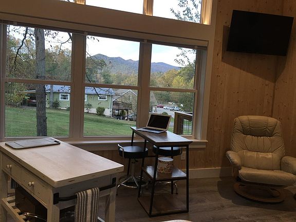 This charming, "treehouse" was lovingly constructed by a local father/son team of craftsmen builders. It was finished in late 2020, and is now available for that special someone who is eager to explore all that charming Black Mountain has to offer. Modern kitchen appliances and sleek quartz countertops. Full-sized washer and dryer. Tastefully turnkey furnished, with a leather sleeper sofa in the living room for relaxing. Beautiful, vinyl plank flooring stretches end-to-end. Tongue-in-groove pine paneling covers all the walls and ceilings. The screened and covered porch was made for lounging and for viewing the Seven Sisters mountain range. Bali black-out shades in the bedroom make for relaxing nights. Ceiling fans in every room cool the warmest days. Super-convenient location in charming Black Mountain. The myriad of downtown restaurants and shops are within walking distance. Head north a block and encounter one of Black Mountain's favorite attractions - the half-mile walking path around Lake Tomahawk. Or, indulge in your favorite sport - tennis, pickle-ball, basketball, and soccer courts and fields are just across the street! The 65-foot graveled landscape walkway from the parking pad to the cabin terminates in a broad 12-step stairway to the porch entrance. From its perch, the porch beckons you to leave your cares and concerns below and beyond.