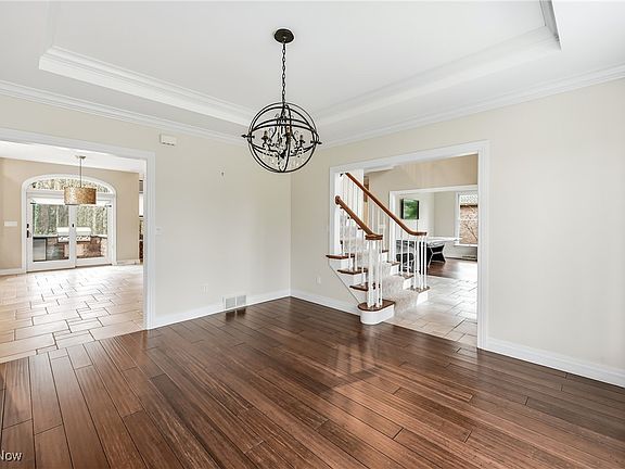 Step into the Large Great Room featuring a floor-to-ceiling Stone Fireplace, built-ins, and an inviting open feel. The Custom Kitchen is a showstopper with granite countertops, a stylish backsplash, center island, breakfast area, double ovens, and a walk-in pantry. A formal dining room with crown molding and rich trim work pairs perfectly with the front living room, which offers hardwood floors and elegant finishing touches.