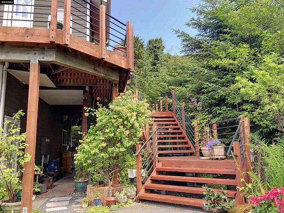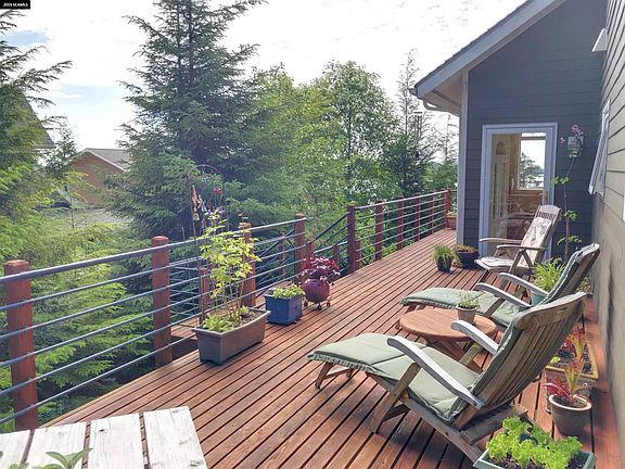 Detailed Craftsmanship with an Open Floor Plan, Views, and Expansive Deck Landscaped for privacy, this well maintained home has epic ocean and Mt. Edgecumbe views, both in and out. The ±702 SF deck is beautifully detailed with copper railings. View windows let in lots of light, filling the open living, dining and kitchen areas on the main level. Wake up to breathtaking views in the top floor master suite. Enjoy the spacious master bath, the soaking tub, and walk in shower. The top floor also offers an office or hobby space. An additional ±312 SF storage space is located on the ground floor behind the garage with shelving for all of your extras. A private covered hot tub area is tucked away under the deck.