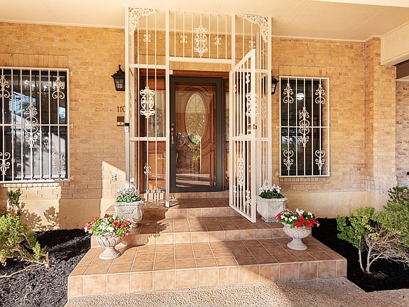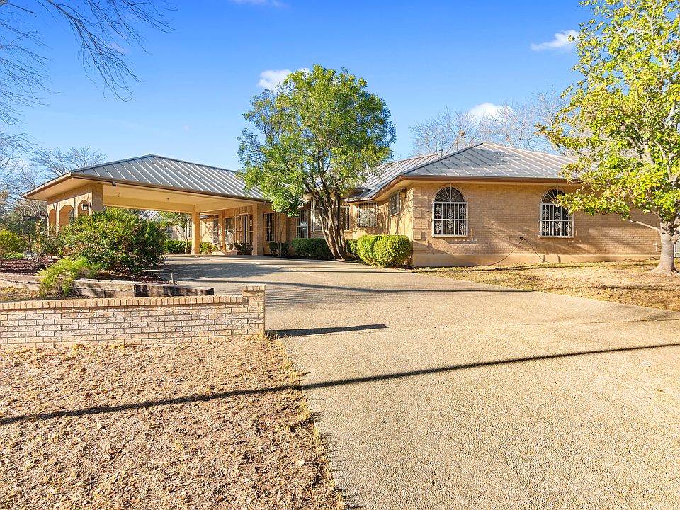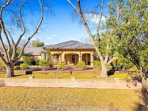Quintessential custom built single story residence is centrally located in desirable Castle Hills. The corner lot is situated on one of the most beautiful streets in the neighborhood. This home offers finishes that were, and still are, a requirement of your most discriminating buyers. Attributes such as Subzero/Wolf appliances, central vacuum, standing seam metal roof, solar panels, solid core doors, 100% brick masonry, spacious open kitchen with massive island, granite countertops and side entry 3-car garage are all included in this home. Other features offered are custom kitchen cabinetry, Kinetico water softener, 5 bedrooms each with en-suite baths and huge closets with built in cabinets, 2 owner's bedroom suites, a cedar lined closet, enormous laundry room, whole house fan, oversized 3-car side-entry garage plus additional front yard circular drive offering 2-car porte-cochere for convenient covered entry. Cathedral and coffered ceilings enhance the rooms throughout the home. This timeless, exceptionally constructed home is sure to please buyers looking for a single story with no steps.
