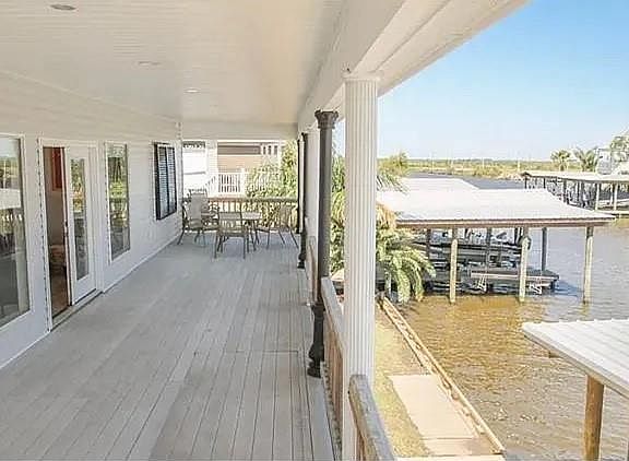 - Exterior features: Dock, Porch, Patio, Outdoor Kitchen