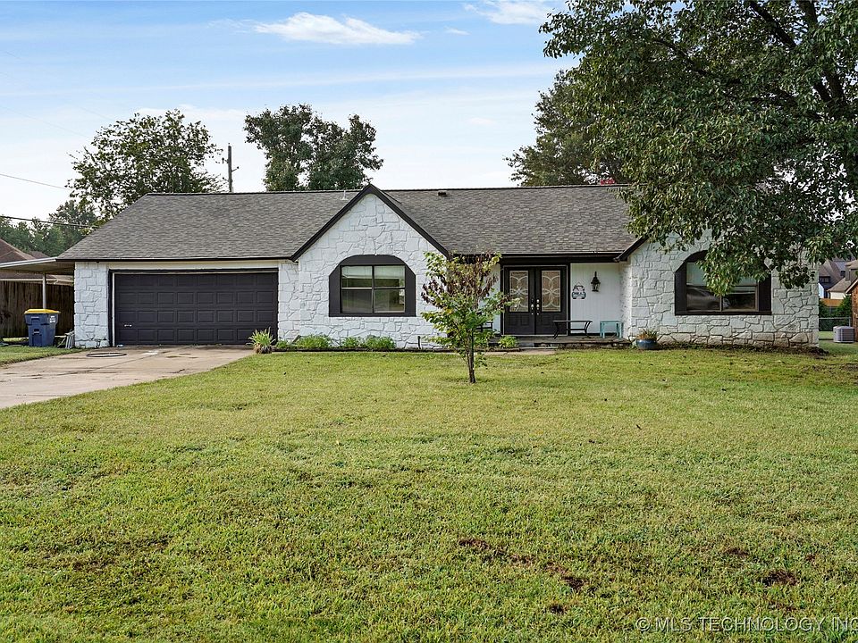 Opportunity awaits in this 3-bedroom, 2-bath home on just over half an acre (.53) in the highly sought-after Jenks school district. Nestled on a quiet cul-de-sac, this 1,868 sq. ft. home features a spacious two-car garage and a cozy fireplace, making it a property with solid bones and tremendous potential. The primary suite includes a handicap-accessible shower, adding both comfort and function.