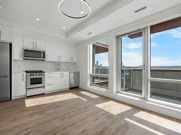 Floor-to-ceiling windowsDowntown viewsOpen-concept layoutVinyl plank flooringContemporary kitchenQuartz countertopsStainless steel appliances
