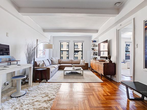8B is a quintessential art deco pre-war condo on West 86th Street, just one block from Central Park West. Perched up above, it has open views, faces north on a double wide street, and also faces east and south. This home is dripping with pre-war details such as inlay hardwood floors throughout the whole space, beamed ceilings, an original cast iron tub plus, windows in every room.
