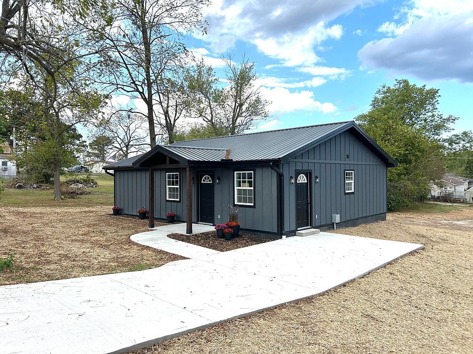 This newly constructed 3-bedroom, 2-bath home blends modern design with high-quality finishes at an unbeatable price. Featuring luxury vinyl plank flooring, granite countertops throughout--including bathroom vanities--and sleek dark ceramic tile in both tub/shower units, it's built for comfort and style. The exterior boasts a beautiful dark grey smart siding, a durable metal roof, concrete parking pad with sidewalk, and rain gutters plumbed away from the house. Inside, enjoy Whirlpool kitchen appliances, Electrolux washer and dryer, a space-saving tankless water heater, and smart mirrors with ambient lighting. With spray-foamed insulation for year-round efficiency and located just 40 minutes from Springfield, this home offers exceptional value and convenience. If this is up your alley, come look today!