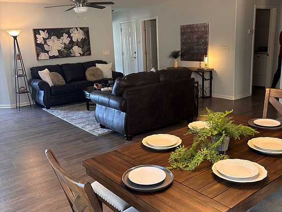 NEW photos uploaded to show currently vacated property verses when it was staged to sell. Convenience meets comfort here at 110 W Quail Hollow Way. Home is located on a quiet cul-de-sac and super convenient to all of Dickson's amazing amenities. One level, open concept floor plan with attached 2 car garage! Luxury Vinyl flooring throughout home with carpet set in primary suite. Huge walk in closet in the primary! New stainless steel refrigerator. 2 covered patios for outside enjoyment. Looking for long term renter 12 month minimum but longer term is available. Pets are allowed with pet deposit. Home is NOT furnished outside of appliances and washer and dryer. Home is available as soon as August 10th
