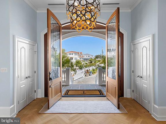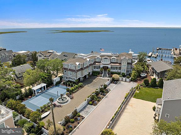 An extraordinary opportunity to own a breathtaking gated bayfront estate on Long Beach Island (LBI) offering stunning panoramic bay views. This custom-built, 8,300 sq ft home is situated on a private property where the bay truly becomes your horizon. Spacious decks provide the perfect setting for evenings ending in rose-colored sunsets mirrored on the bay's surface. Inside, the home features expansive spaces ideal for gathering and reflection while intimate suites offer breathtaking water views, privacy and comfort. The home has been constructed with the latest techniques and products to allow for easy year-round maintenance and longevity. The main level includes grand living and dining areas with 13-ft ceilings, with floor-to-ceiling sliders, beautiful custom millwork, a gourmet kitchen with premium appliances and a hidden full butler’s pantry. The coffered ceiling living room, complete with a custom-built bar and fireplace opens up to a space featuring a pool table and a tropical 1,300-gallon aquarium along with a custom built, temperature-controlled wine room. The infinity edged raised pool provides breathtaking exposure to the bay and sunsets. The east side of the main floor houses a lounge with a bar that leads into a professional grade golf simulator room, and a gym filled with state-of-the-art exercise equipment and a full steam shower bathroom. Take the four-stop elevator down to the three conditioned garages and dog washroom or up to the second level which features six en-suite bedrooms with walk-in closets, a double laundry room and a sitting room. Three of the en-suites lead out to an expansive deck with a fireplace and stunning water views. The primary suite is a true sanctuary with its own private stairwell, offering an office, two walk-in closets, a soaking tub, and a private deck along with a convenient stackable washer and dryer closet. The home was built by Mancini Custom Homes and decorated by highly regarded interior designer Mary O'Brien Cabaron Interior Design with high end furniture and fixtures. Ample storage for water toys, fishing gear, and outdoor furniture is available in the walkable expansive crawl space or in the fourth conditioned garage located on the northwest side of the home opening up to the backyard making it easy to store all your outdoor belongings. The home has radiant heat throughout (including garages), smart home technology including motorized and programming shades throughout, Lutron programmable lighting, Hikvision movable exterior cameras, high-tech security system, Generac whole-house generator, and Control 4/Sonos audio/video technology. The beautifully professionally landscaped exterior amenities include an outdoor kitchen, a firepit with seating, two outdoor showers, a putting green, a pickleball/basketball court, a roof-top hot tub, and high end motorized hurricane screens on the first floor decks designed to extend the seasons for outdoor living, and protection from the sun. Summer days can be enjoyed by the heated infinity gunite pool and spa overlooking the Bay, complete with deck lighting, a Sonos Sound system and SunBrite television. On cooler evenings, you can cozy up and relax in a lounge area by a gas fireplace located on either the first-floor patio or second floor deck. For boating enthusiasts, a dock with two high end hydraulic No-Profile platform boat lifts (40k and 20k lifting capacity) and a WayKleen Power Washer are already in place offering direct access to the water. This estate is more than a home; it is a rare retreat where elegance meets serenity.