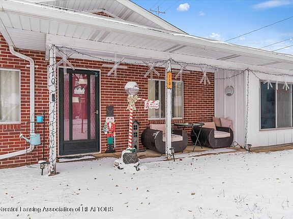 This charming ranch home at 110 W Willow in Perry, MI, has been thoughtfully updated to offer both comfort and style. Featuring a new furnace, central air, and hot water heater installed in 2021, along with a new roof in January 2022, this home is move-in ready. The interior boasts new flooring in the kitchen, dining room, and bathroom, complementing the beautiful beamed ceilings throughout. With 4 spacious bedrooms and 2.5 baths, including a luxurious master suite complete with a large bedroom, a newly updated bathroom, and French doors leading to a private patio, this home offers ample space for relaxation and entertaining. Additional features include a convenient main-level laundry room and a three-season room for year-round enjoyment. The home is constructed with durable brick, adding both aesthetic appeal and long-term value.