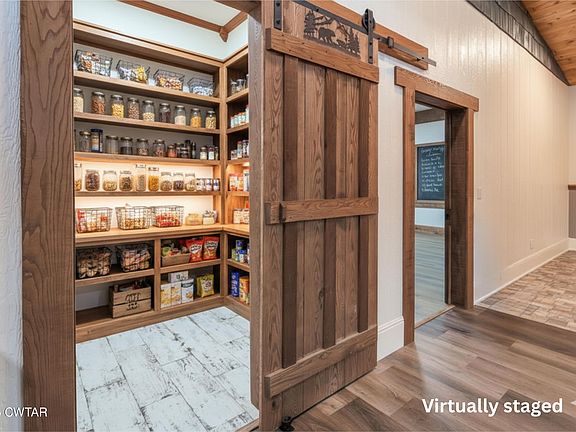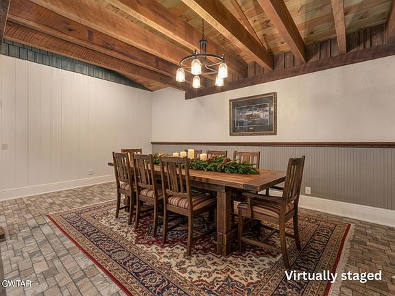 Thinking about moving to the heart of West Tennessee? Here's your chance! Nestled on 1.4 acres in the sought-after Bradford Special School District, this exceptional artisan crafted lodge offers an unparalleled living experience. The commercially built brick home boasts over 5,000 square feet of meticulously designed interior space on one level, with an additional storybook loft. Upon entering, you'll discover a thoughtfully curated open floor plan, prioritizing accessibility with large doorways, spacious rooms, and a garage entryway with potential for ADA modification, if needed. The heart of the home is the expansive main living area, built with a robust truss system and solid concrete slab. This magnificent space is characterized by sawmill circular-cut Cypress beams and a striking wood ceiling finished with a warm Early American stain. The truly distinctive design ensures that no two rooms are exactly alike, creating a sense of discovery and individuality throughout. The residence features four bedrooms, including two expansive primary suites ideal for comfortable in-law arrangements and flexible multi-generational living. There are three full bathrooms, each a spa-like retreat with large, tile open-air showers and convenient built-in benches. Custom tile work in each wet area reflects meticulous attention to detail and design. The inviting kitchen area features stylish painted cabinets, a custom-designed backsplash, and a kitchen island that serves as a natural gathering point. A large pantry provides abundant storage and can be customized to suit your organizational needs. A formal dining room is perfect for gatherings, while a versatile flex space provides endless possibilities - envision a private home office, an immersive theater room, or a refined library. This adaptable room is enhanced by unique architectural elements including brick veneer, vintage windows, charming French doors, and an eye-catching arch window. A heavy gauge metal roof, installed in 2019, offers durability and longevity. The home also features an oversized 2-car garage and an accessible exterior storm shelter for added safety and peace of mind. The property boasts a convenient circle driveway with dedicated RV parking. The grounds offer a wealth of possibilities, with ample space for a serene pond, a flourishing large garden, a practical workshop, or even the potential for a second home. Situated in the welcoming community of Bradford, this property offers the desirable balance of peaceful country living with convenient amenities a short distance away. This artisan sanctuary is a true sensory experience, filled with intriguing textures and unique details, including exquisite tile sourced from Italy. Each room within this remarkable home offers a truly distinctive and memorable experience. Don't miss this opportunity to own a truly one-of-a-kind property. *Home is virtually staged. Closet & pantry show potential but no shelving is included.