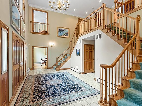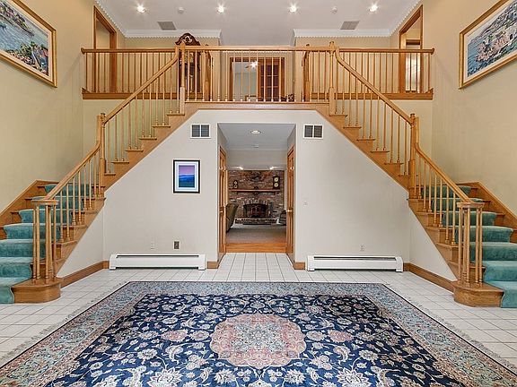 Custom built Center-entrance Colonial in a FANTASTIC neighborhood setting! Situated on a corner lot, set back behind a circular drive, you will start to notice all the extras this home features. This home was meant for entertainment! Enter through the double doors & take in the double bridal staircase, the symmetrical Juliet balcony rails from 2 of the 2nd floor bedrooms, the double doors leading to the Primary Bedroom. Everything is oversized! Ceilings on the first floor are 10' high and the windows are huge, letting in lots of light & feeling of space. To the left is the Formal Dining Room & the enormous eat-in Kitchen with a walk-in "food closet"/pantry, plenty of storage & counter space & easy access to the deck & back yard.. Straight ahead between the double staircase is the Family Room, with a large brick fireplace that is connected to a wood stove. Two more sliders leading to the deck & back yard access. The study can be accessed through the family room or the Formal Living Room, which also features a wood burning fireplace. Mudroom access to the kitchen & 1/2 bath & additional 1/2 bath in the hallway leading to the FR. Upstairs does not disappoint. The Primary Bedroom is enormous with cathedral ceilings, a fireplace, skylight &leads into it's own private bath, complete with Water Closet, step up soaking tub, double sinks, "primping station", huge walk-in dressing room & access to the laundry room. 2nd Bedroom also accesses laundry room & mirrors the 3rd bedroom with t