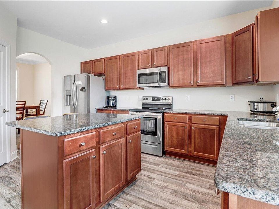 Step into this beautifully maintained two-story home located in the desirable Cottages at Wilsons Mill. Offering 4 bedrooms and 2.5 baths, the open-concept layout features a generous living area that seamlessly connects to the kitchen—complete with granite countertops, stainless steel appliances, ample cabinetry, and a large island with a breakfast bar. A separate formal dining room just off the kitchen makes entertaining effortless. Upstairs, the spacious primary suite impresses with vaulted ceilings, abundant natural light, a walk-in closet, and a spa-like ensuite with dual vanities, soaking tub, and walk-in shower. Three additional bedrooms offer versatility for family, guests, or a dedicated office space, in addition to the convenience of an upstairs laundry room. Situated only minutes from downtown Clayton, this home provides easy access to local shops, restaurants, and community events—while still offering the tranquility of a peaceful neighborhood setting.